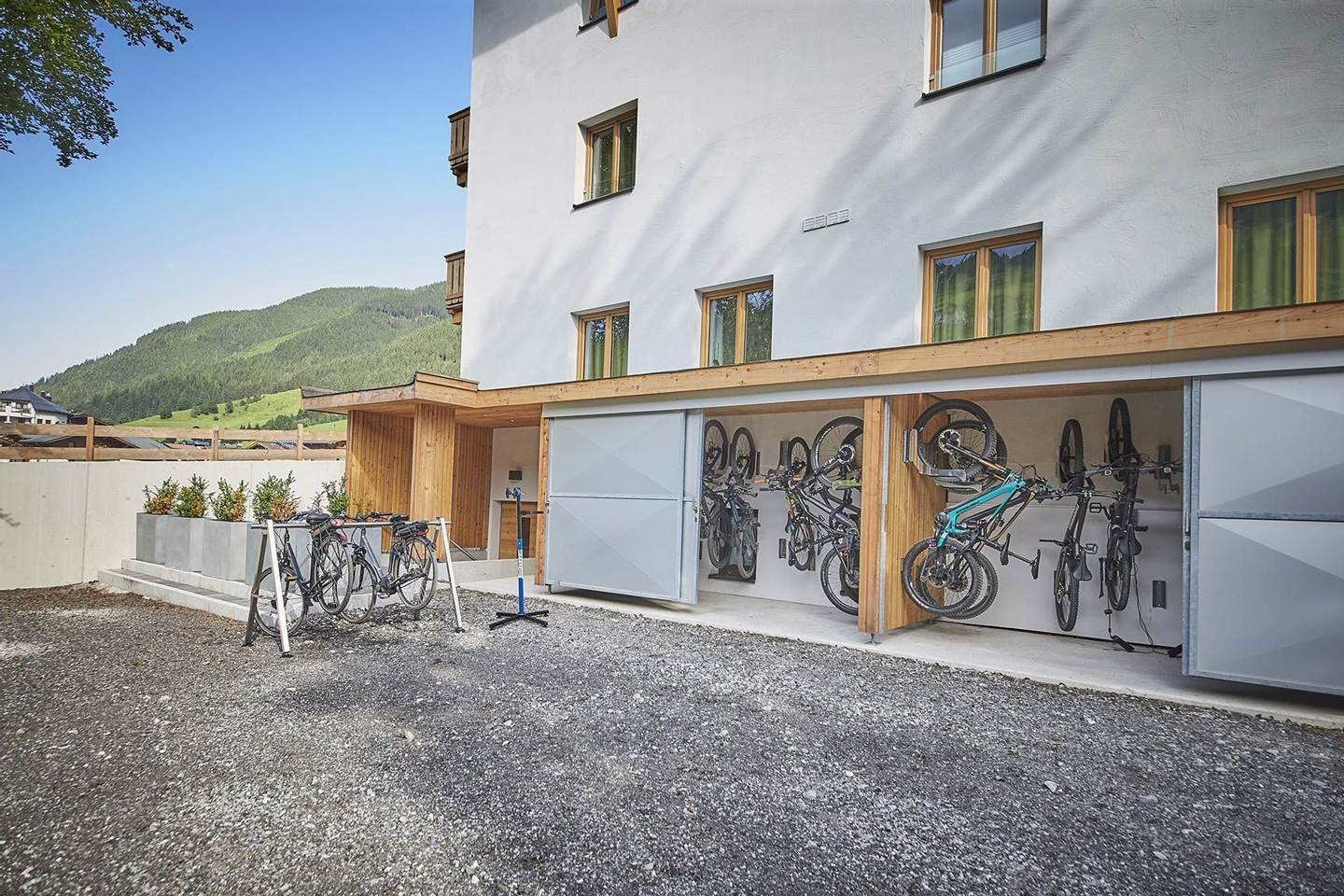 Ons hotel heeft een afgesloten garage met een stroomaansluiting voor e-bikes. Je bent ook welkom om je fietsen schoon te maken in de fietsenwasbox in de Zwölferkogel parkeergarage naast het hotel. Naast de fietsenstalling heeft Hotel Hubertushof ook verwarmde kluisjes die gebruikt kunnen worden voor wandel- en fietskleding. Om uw vakantie zo comfortabel mogelijk te maken, regelen we op verzoek ook graag een bagagetransfer. Voor gasten die zonder fiets reizen, is er Rabbit Sports in de directe omgeving.